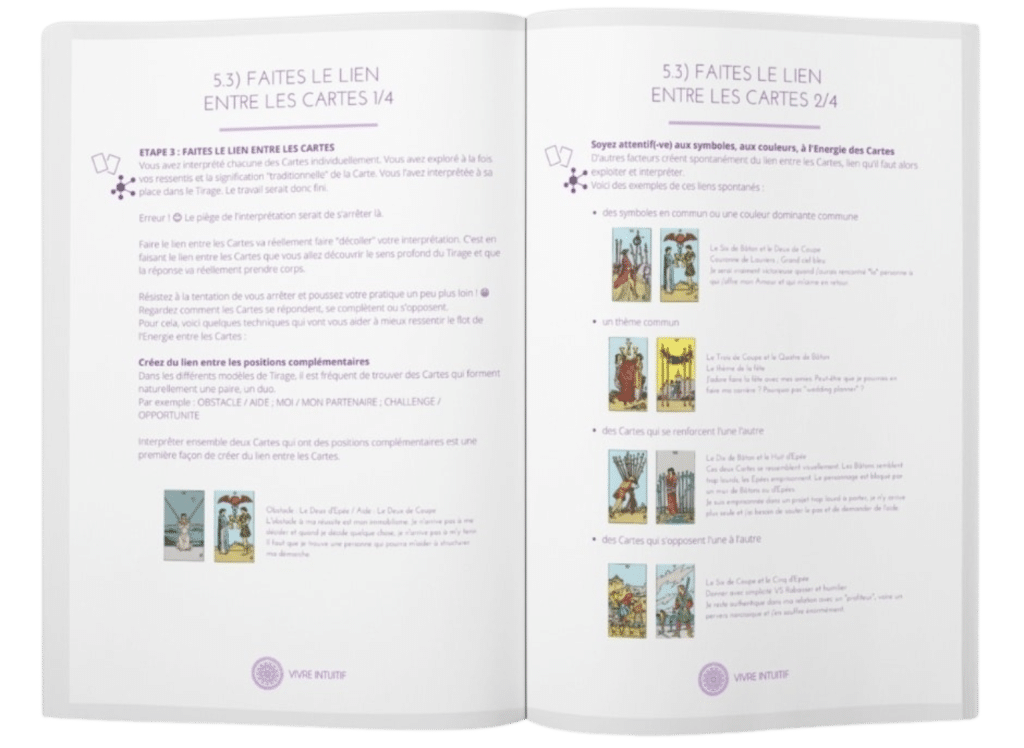 La méthode intuitive vous permet de ressentir que *votre* interprétation est “la bonne” ; qu’aucun livre ou site internet ne peut vous donner “la réponse” puisqu’il s’agit pour vous de la construire avec vos ressentis et votre Coeur.
